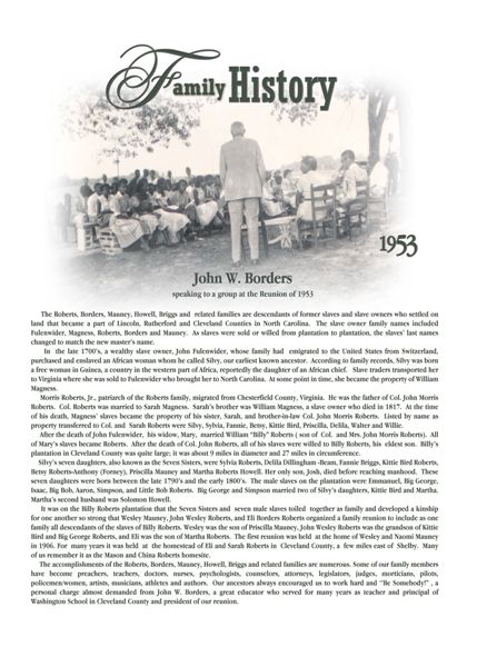 Roberts, Borders, Mauney, Howell, Briggs and Related Families